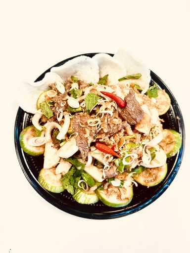 Beef salad w/ Thai egg Plant, Onion Ring(L), Bucket 6 Beer